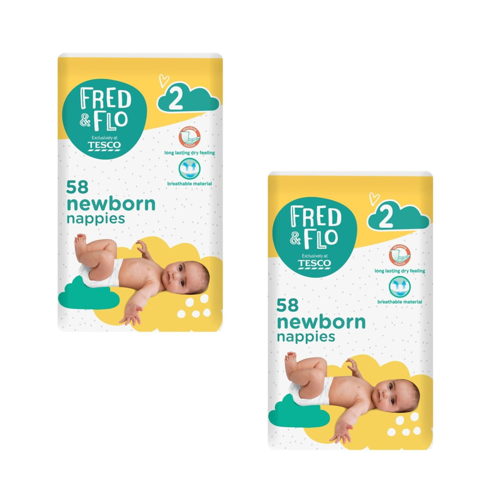 2X Fred & Flo Size 2 Nappies Newborn 58 Pack
