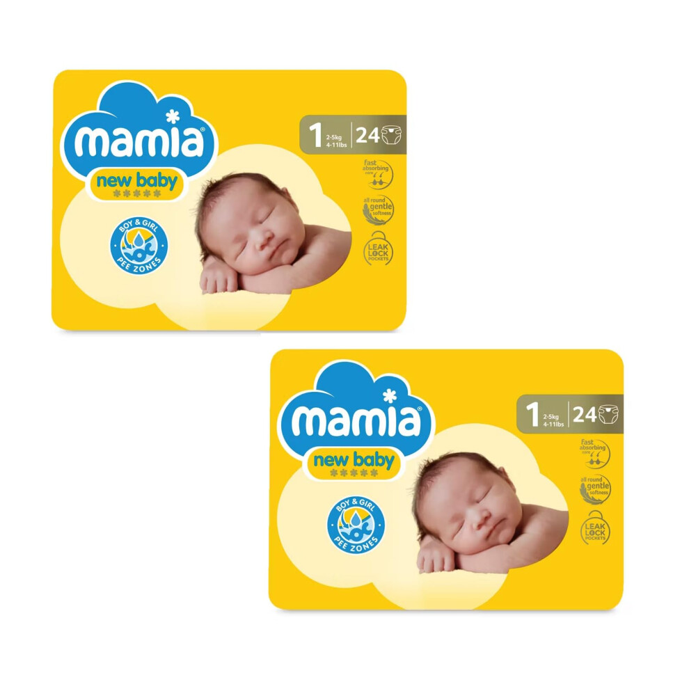 ALDI Mamia Newborn Nappies, Size 1, 2 x Packs of 24 (48 Nappies)