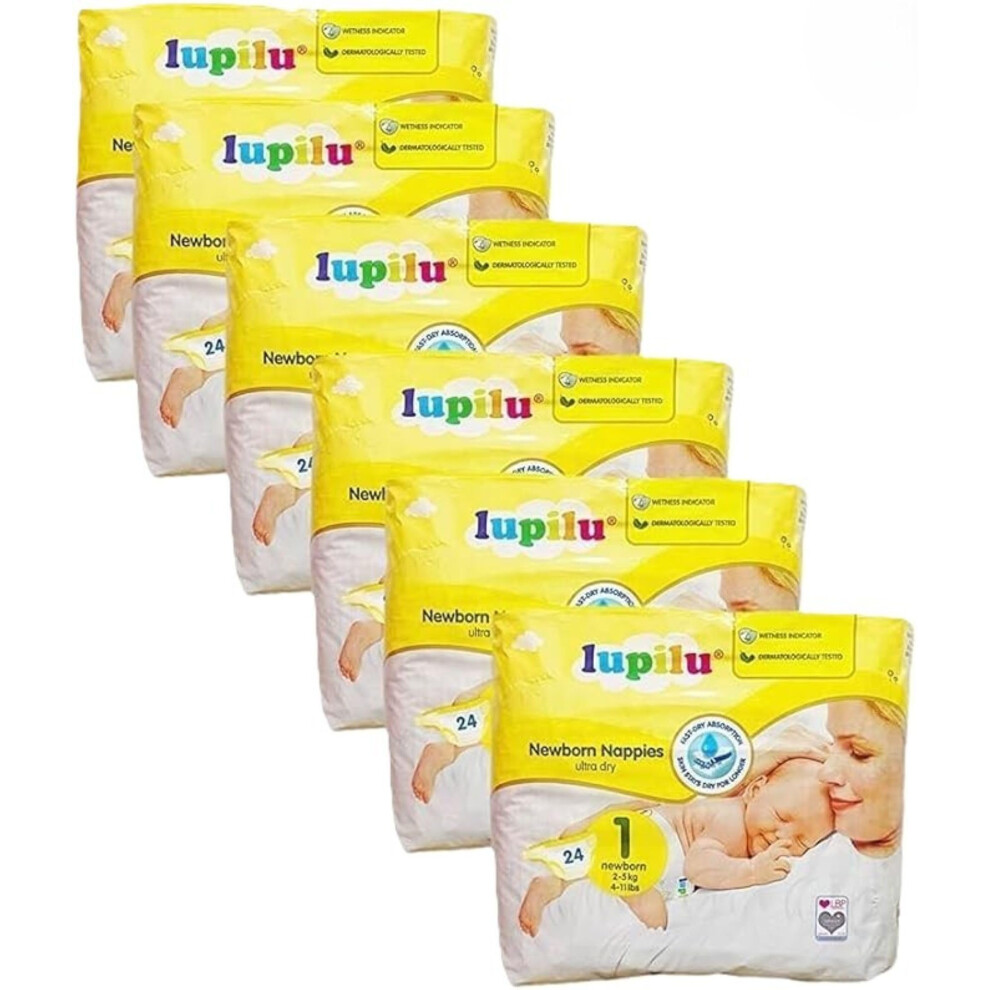 6 Lupilu Newborn Nappies - Ultra Dry | Size 1 Nappies Newborn 2-5kg(4-11lbs) 24pcs