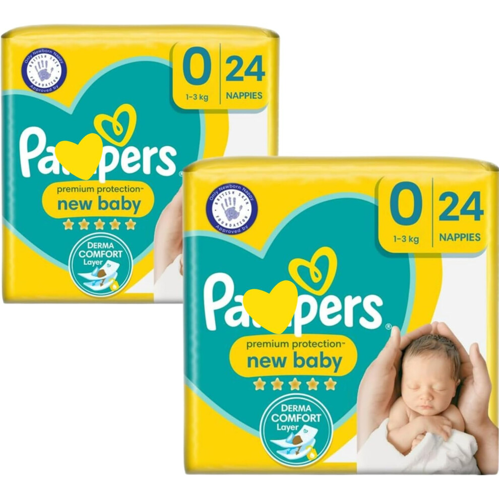 Newborn Nappies Bundle | 2 Packs of Size 0 Premium Protection, Total of 48 Size 0 New Born Nappies | Hubsidia Bundle