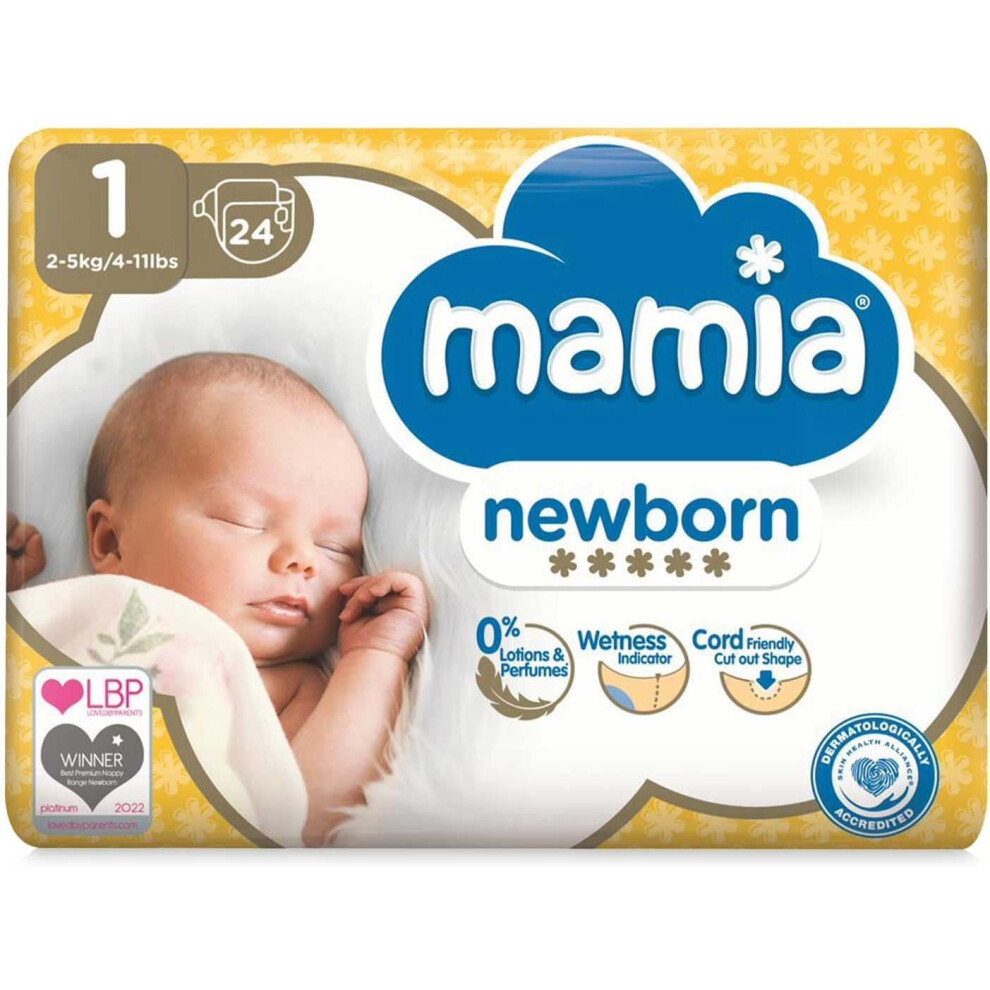 Mamia Size 1 Nappies Newborn 24 Pack, 144 Nappies (6 x 24)