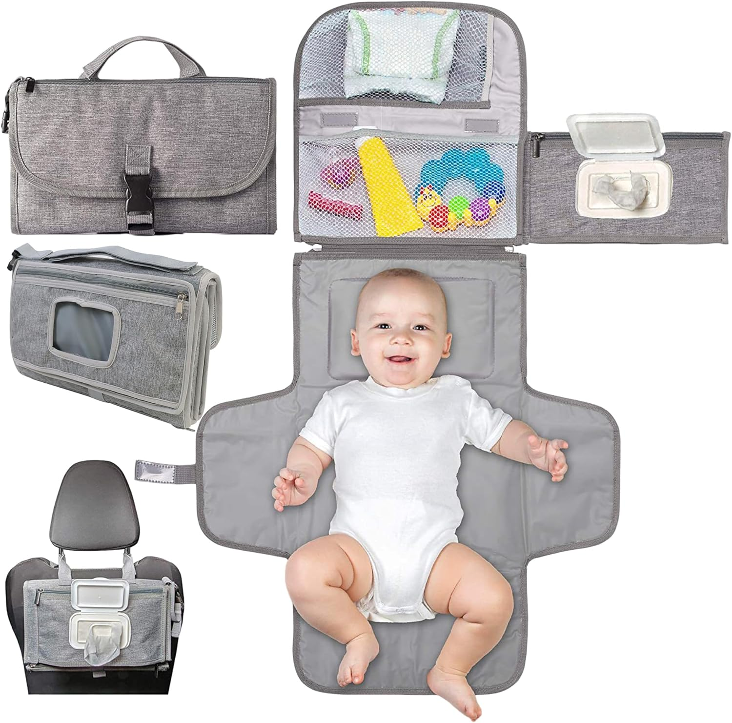 Nappy Changing Mat, Foldable Diaper Pad Waterproof Travel Changing Mat with Gray