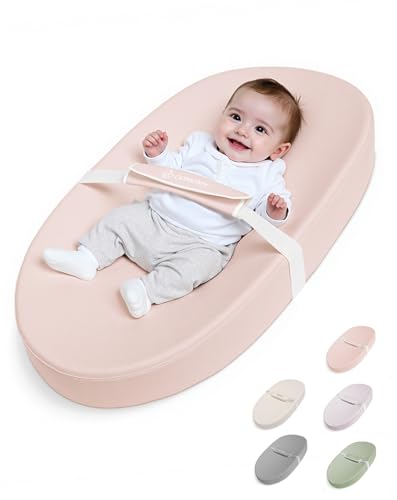 COMOMY Vegan Leather Nappy Baby Changing Mat with Waterproof and Wipeable PU Cover, Anti-Roll and Anti-Slip Diaper Chang Mat with Safety Straps, Portable Changing Pad, for Dresser and Table (Pink)