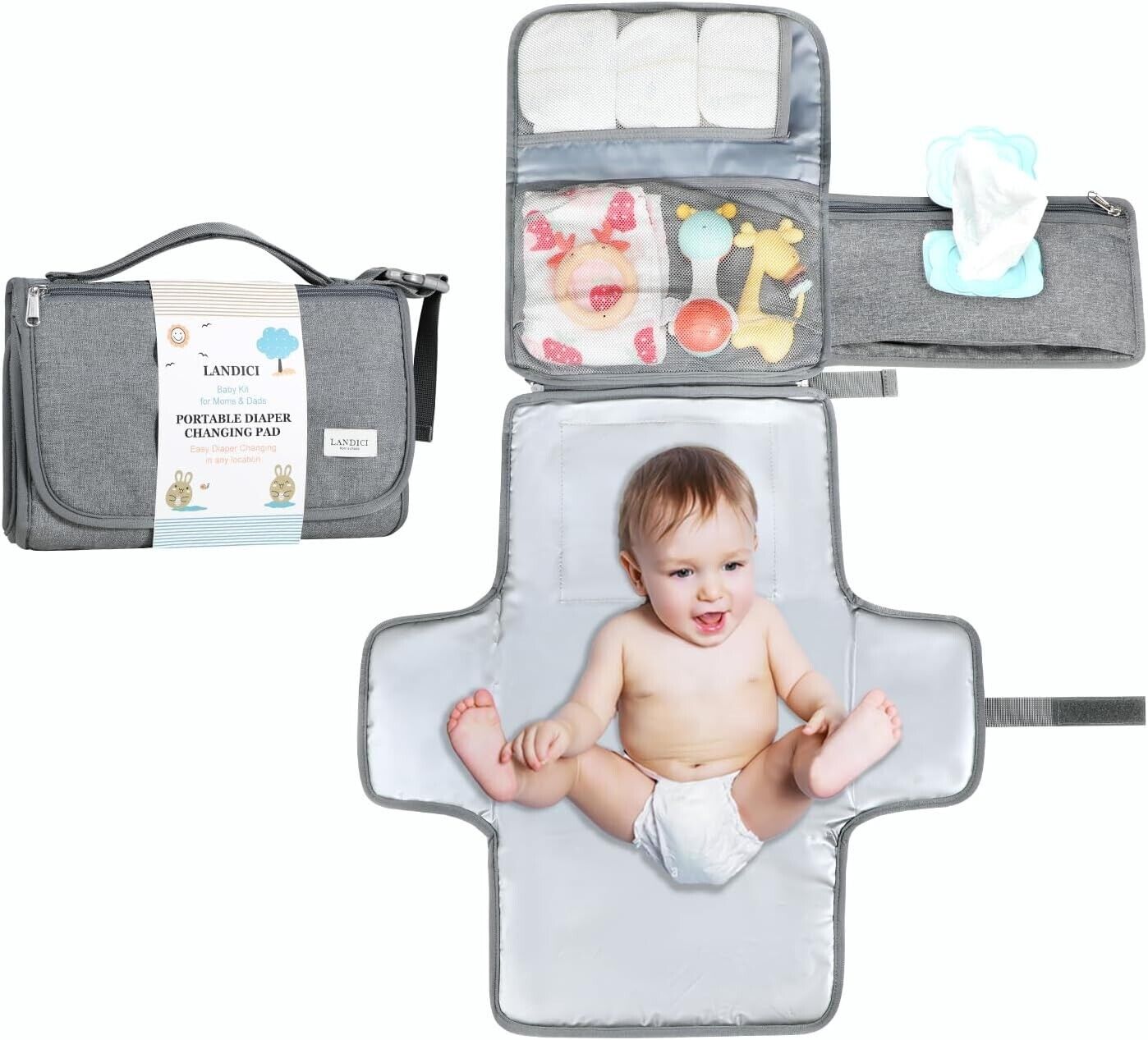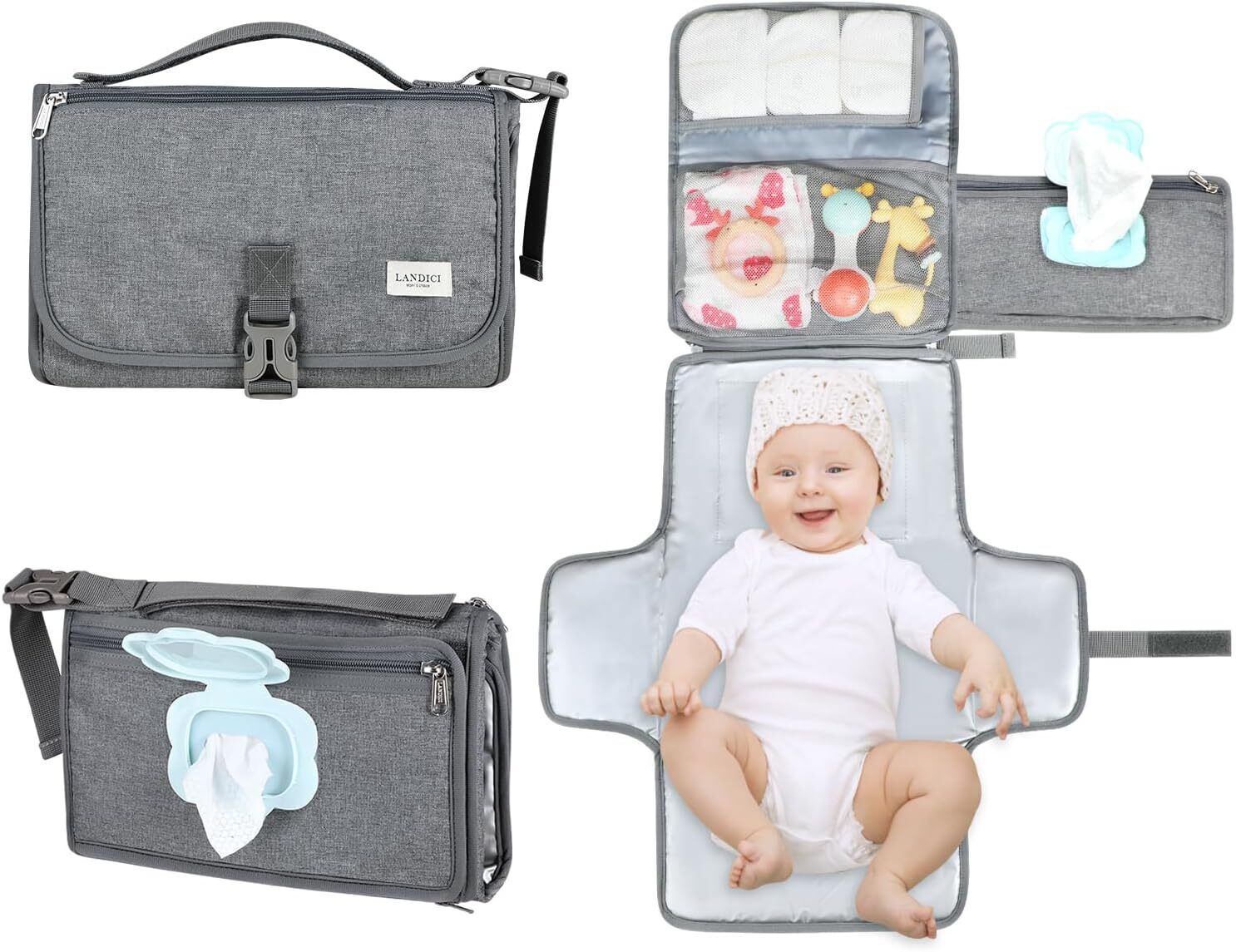 LANDICI Portable Nappy Changing Mat for Newborn Baby with Smart Wipes Pocket Wa