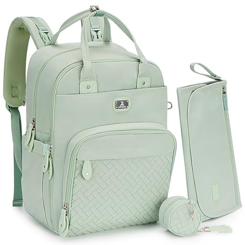 Dikaslon Baby Changing Bag Backpack, Large Baby Bag for Mum and Dad with 19 Pockets, Spacious Nappy Changing Bags with Mat, Pacifier Holder, Stroller Straps, Durable Polysteer (Mint Green)