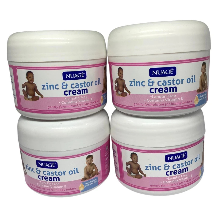 4 x NUAGE ZINC AND CASTOR OIL CREAM FOR BABY BABIES NAPPY RASH WHITE 200ML NEW