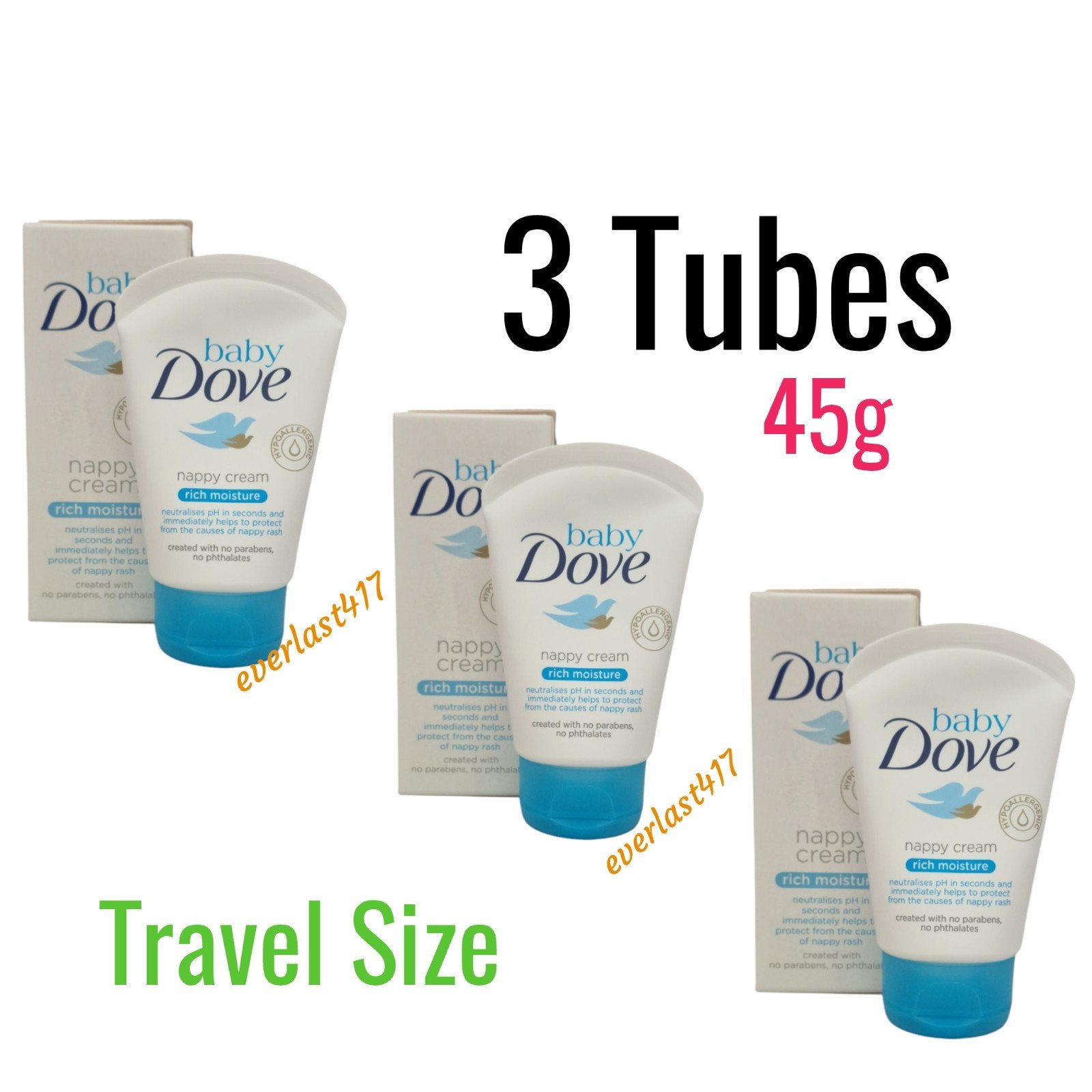 Baby Dove Rich Moisture Nappy Cream Protect Rash 3x 45g delicate skin