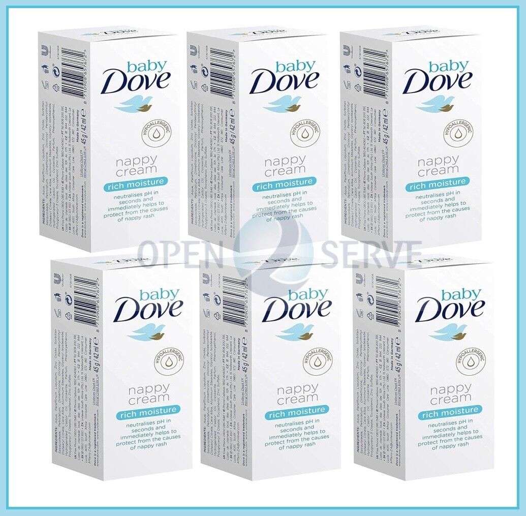 6x Baby Dove Rich Moisture Nappy Rash Cream Neutralise pH | Hypoallergenic - 45g