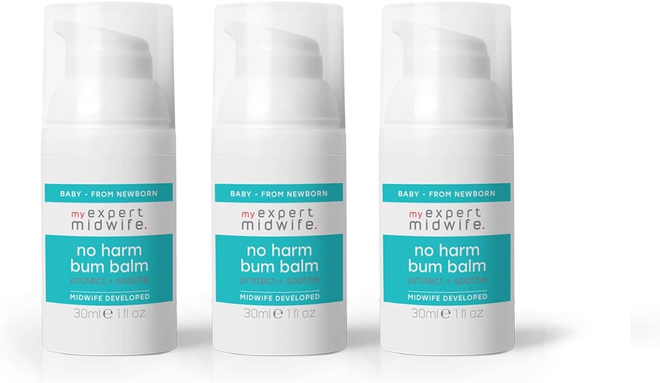 My Expert Midwife No Harm Bum Balm Nappy Cream, 100% Naturally Derived Baby Bottom Balm, protect & help recovery from nappy rash, gentle, moisturising serum. Suitable for Newborn babies - 30ml