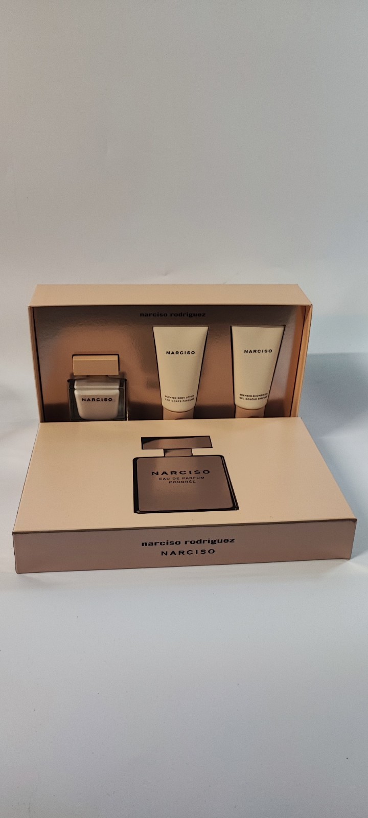 NARCISO RODRIGUEZ NARCISO POUDREE GIFT SET 50ML EDP + 50ML S/G + 50ML B/L. NEW