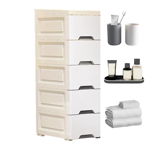 Générique Narrow Bathroom Storage Unit with Wheels for Kitchen | 5 Tier Drawer Design Vertical Organizing Shelves for Hotels Apartments