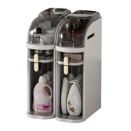 KHNR 2-Tiers Slim Bathroom Storage Cabinet, Foldable Storage Cabinets,Narrow Bathroom Storage,Movable Bathroom Storage Organizer for Small Spaces,Bathroom,Kitchen,Laundry,White