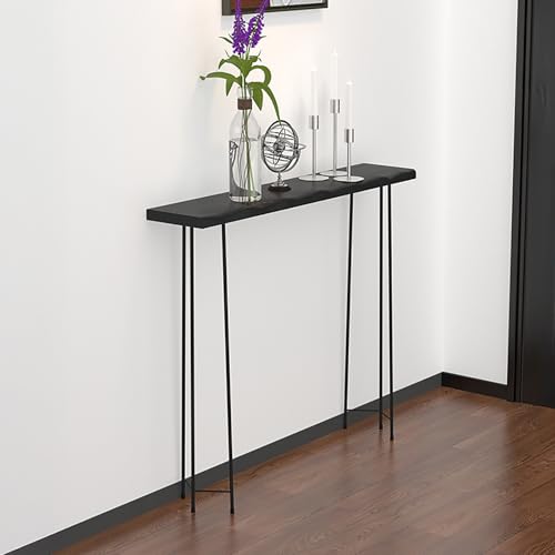 SXKLLYX Black Narrow Tall Console Table, Thin Entryway Sofa Table with Iron Legs for Entryway, Living Room, Irregular Artificial Natural Edges(120x20x90cm/47x8x35in)