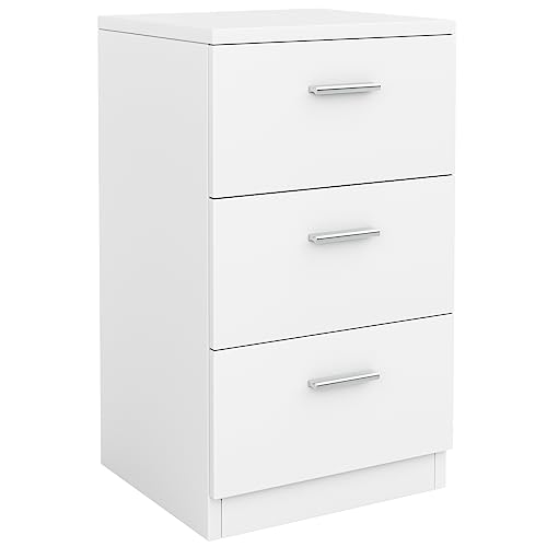 COSTWAY Wooden Chest of Drawers, 3-Drawer Dresser Cabinet, Floor Standing Narrow Storage Cupboard Organiser Unit for Bedroom, Living Room, Closet and Hallway (White)
