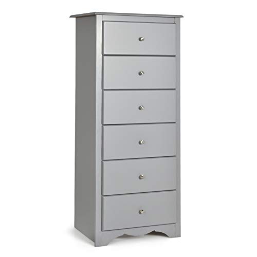 COSTWAY Wooden Chest of Drawers, 6-Drawer Dresser Cabinet, Floor Standing Tall Narrow Storage Cupboard Organiser Unit for Bedroom, Living Room, Closet and Hallway (Grey)