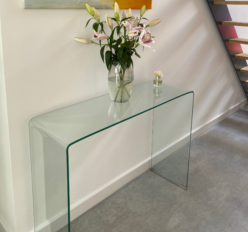 Modern Console Table Bevelled Glass Dressing Transparent Large Narrow Hall Desk