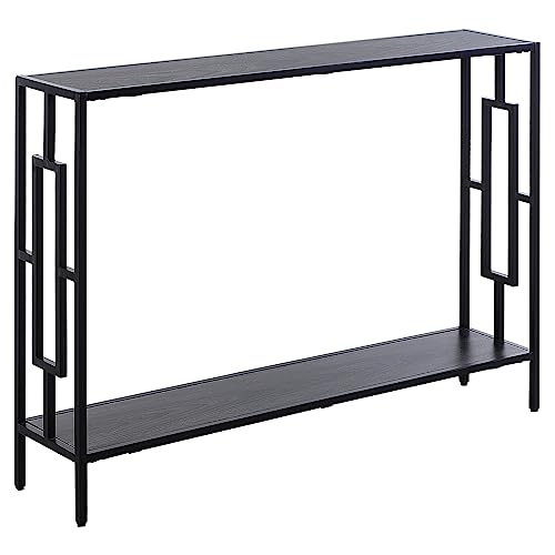 Hallowood Furniture Bewdley Large Black Console Table with Shelf, Narrow Metal Sofa Side/Dressing Table, Ideal Living Room, Lounge, Hallway or Bedside Tables with Ultra-Modern Design