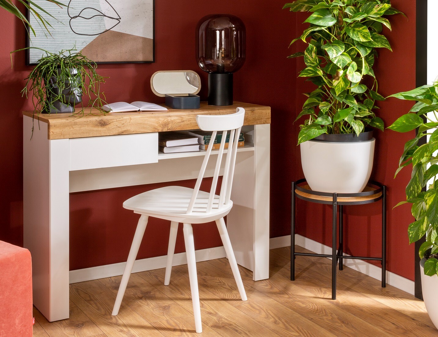 Desk Slim Narrow Dressing Table Console Hall Drawer White Gloss Oak Holten