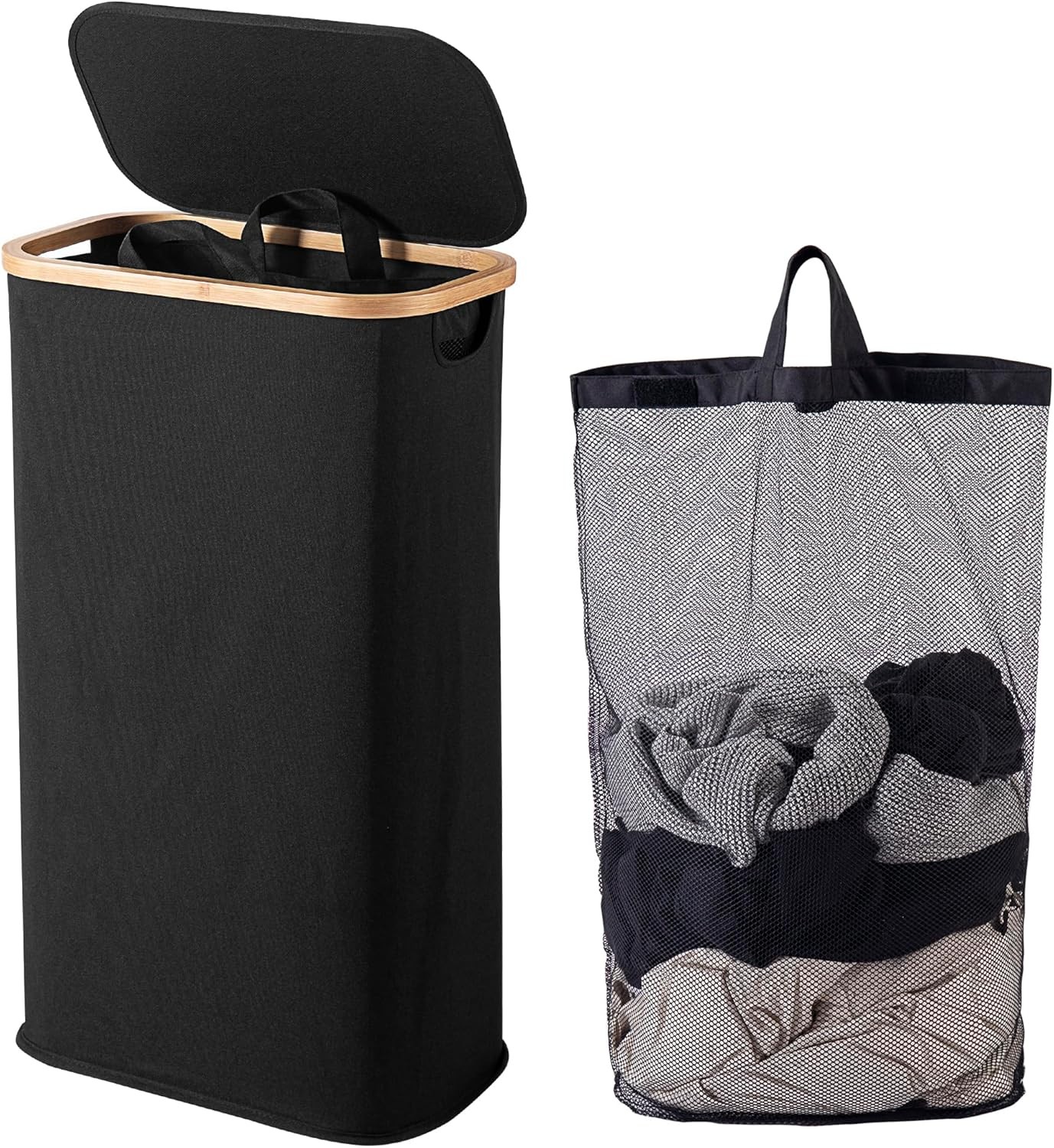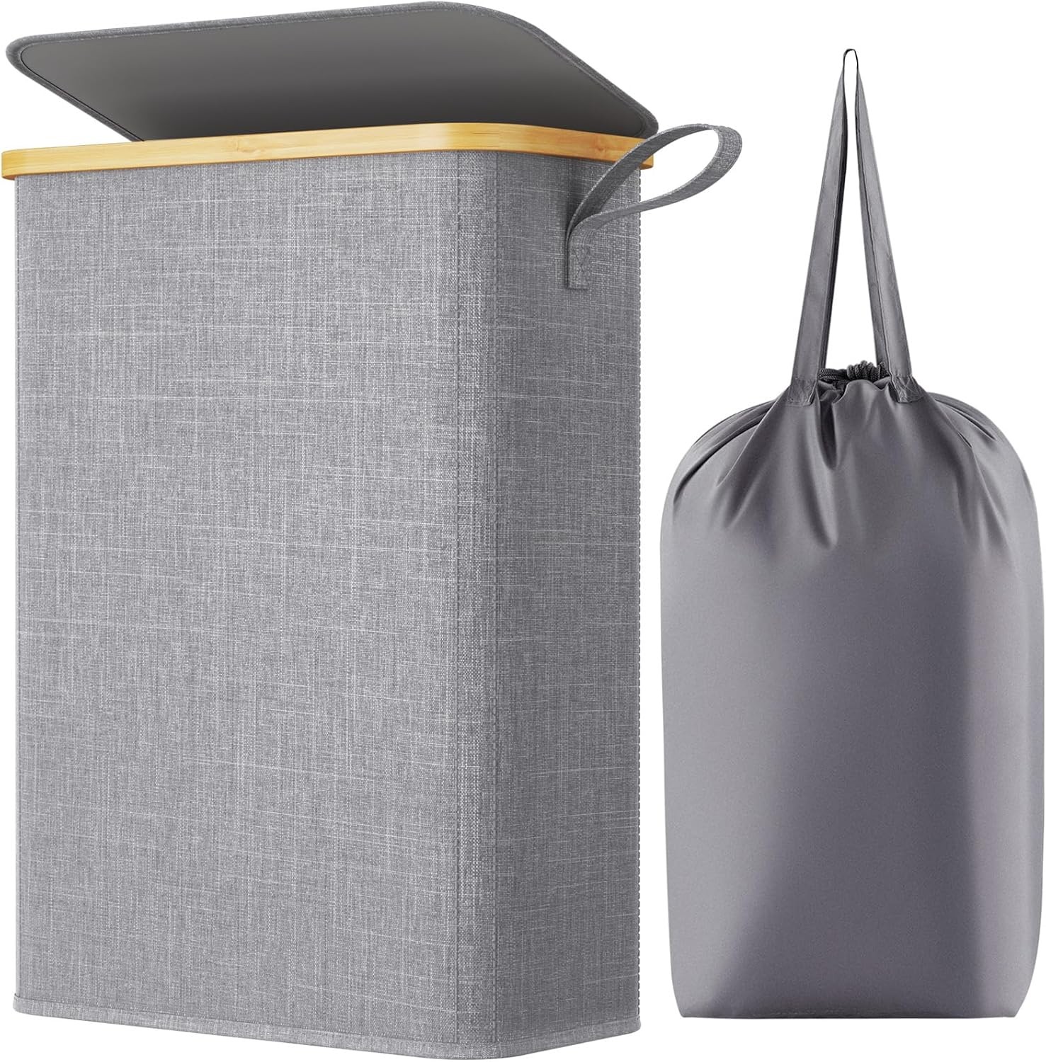 Gadgy Laundry Basket with Lid, Narrow Laundry Hamper, Removable Laundry Bag, Bamboo Laundry Basket Collector, Foldable, Large 103 Litres, Laundry Baskets