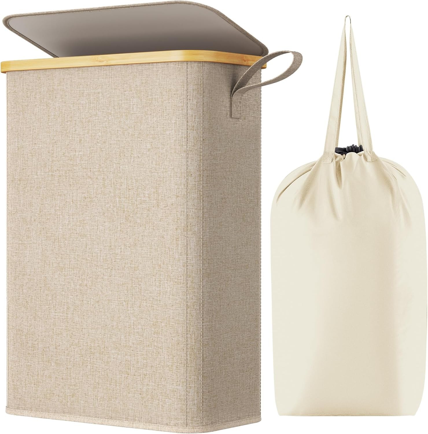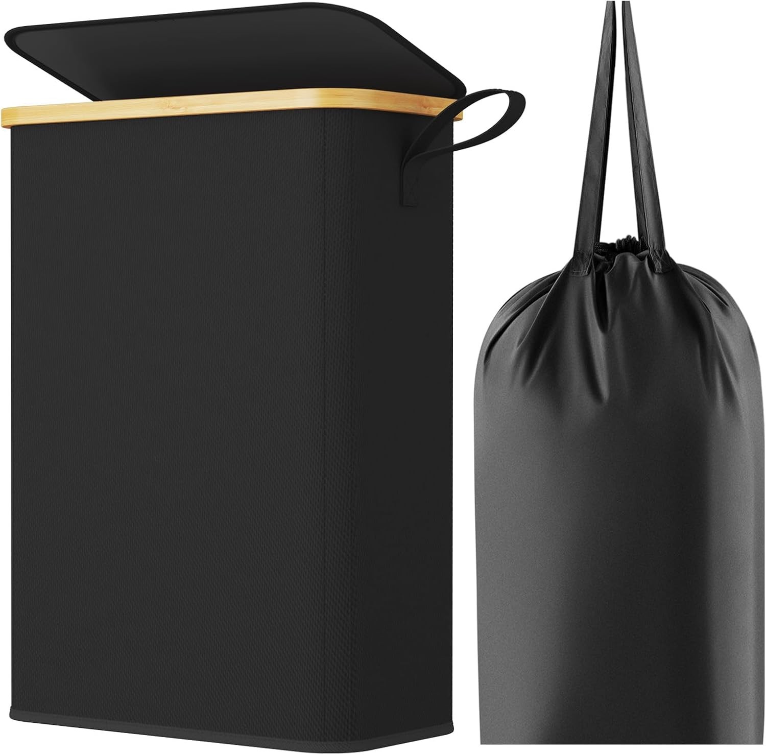 50L Slim Laundry Hamper with Lid, Narrow Laundry Basket with Removable Bag & Bam