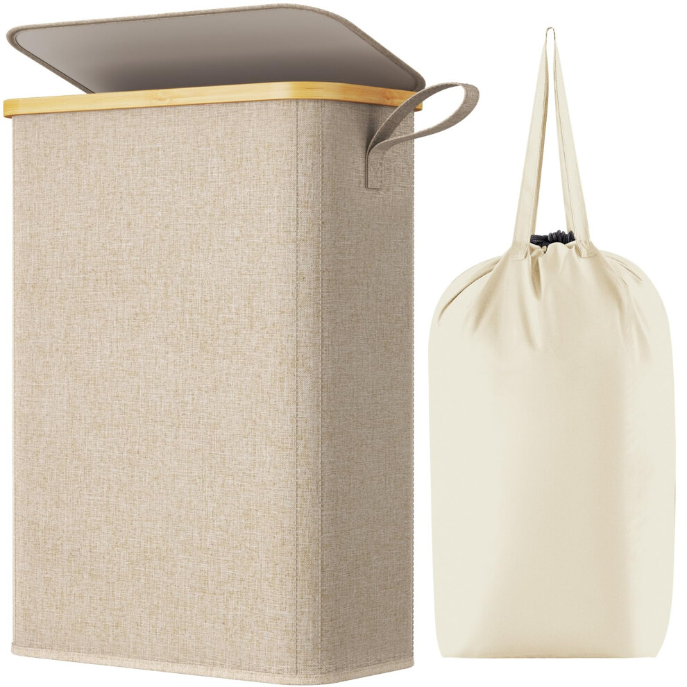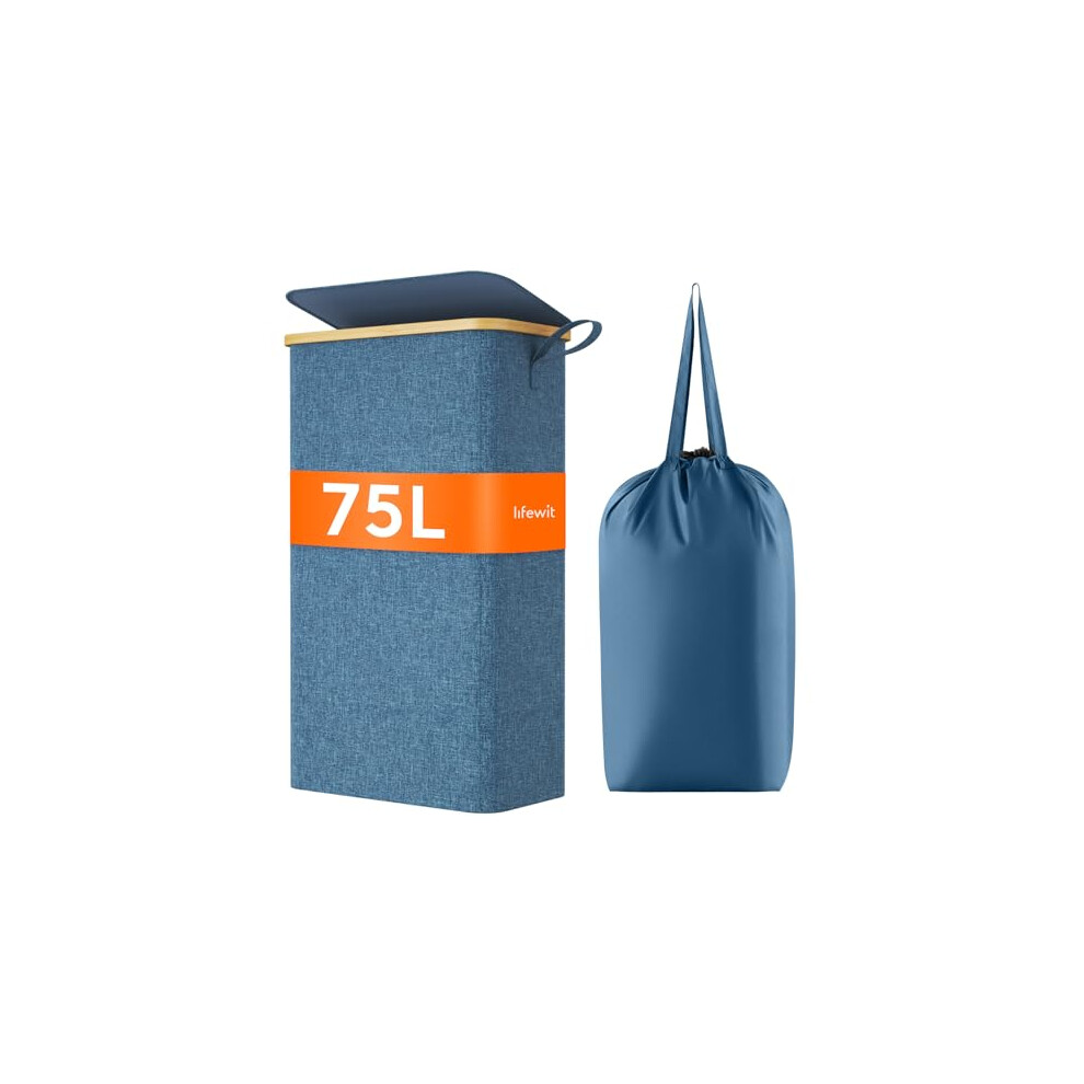 Lifewit 75L Slim Laundry Hamper with Lid Narrow Laundry Basket with Removable Bag Bamboo Handles Fodable Thin Dirty Clothes Hamper for Laundry C