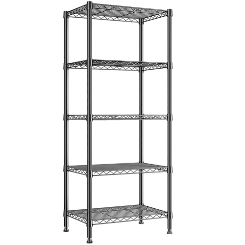 Cliporix 5-Tire Metal Shelving Units for Storage, 135Hx40Dx30Wcm-100kg Heavy Duty Narrow Shelving Unit with Adjustable Shelves & Feet for Kitchen, Plants, Bathroom, Easy to Assemble