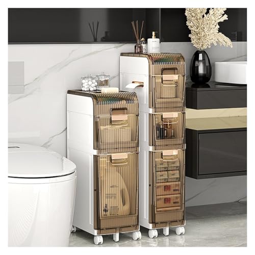 Failjierue 3/4/5-Tier Narrow Storage Cabinet with Drawers - Modern Plastic Bathroom Floor Organizer, Freestanding Toilet Paper Holder & Multifunctional Shelf Unit for Kitchen, Bedroom(3th Floor)