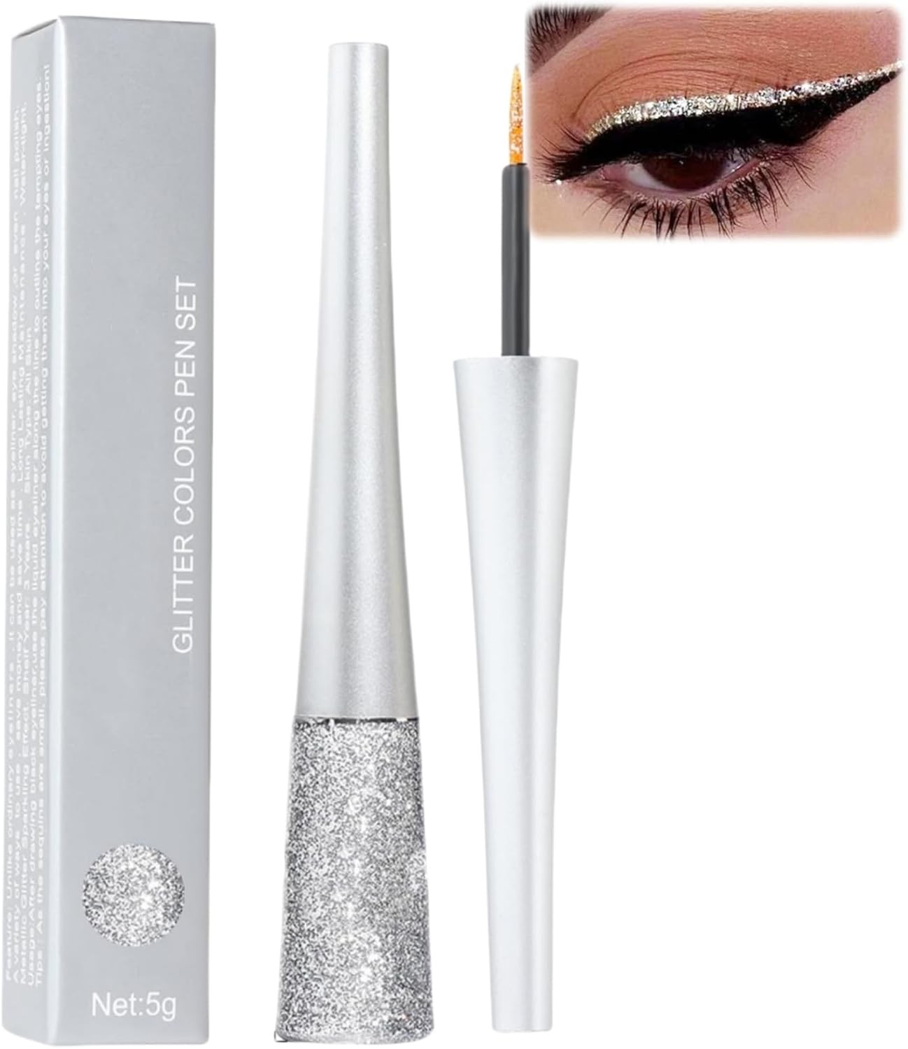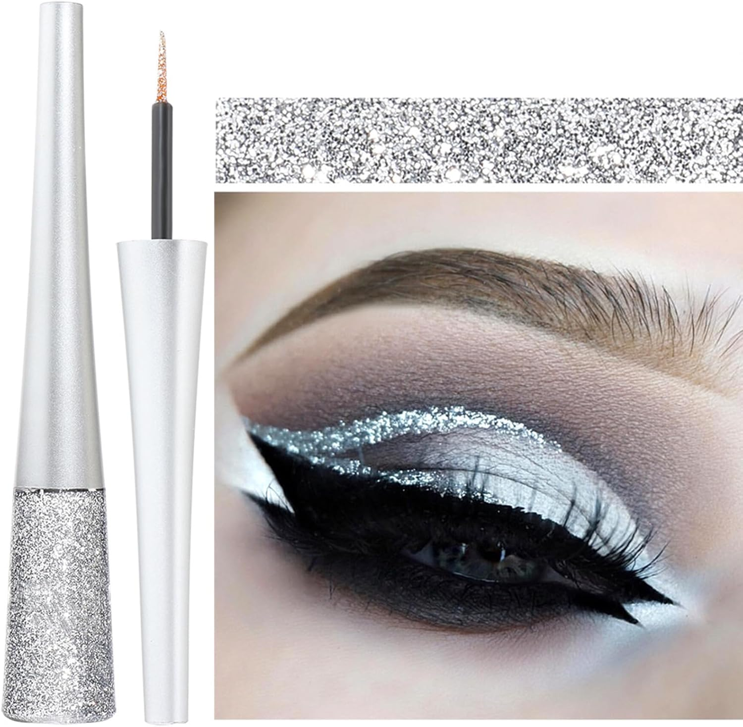 Long-Lasting Smudge-Proof Silver Glitter Eyeliner - Liquid Glitter Eyeshadow wi