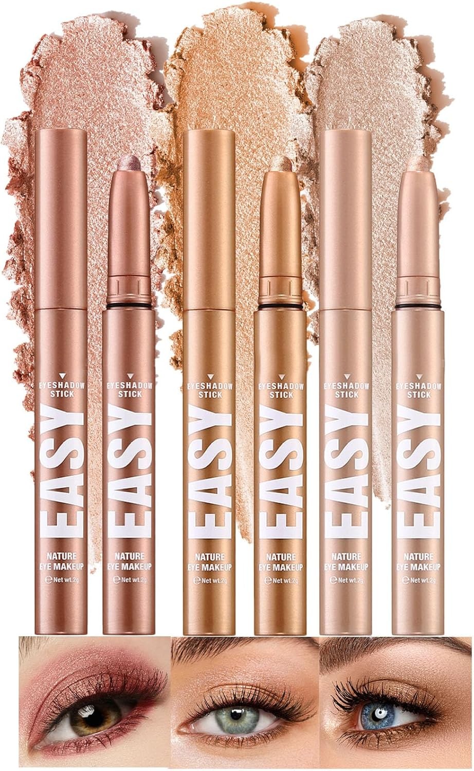 3PCS Glitter Eyeshadow Stick Set, Waterproof & Smudge-Proof Cream Eyeshadow Pen