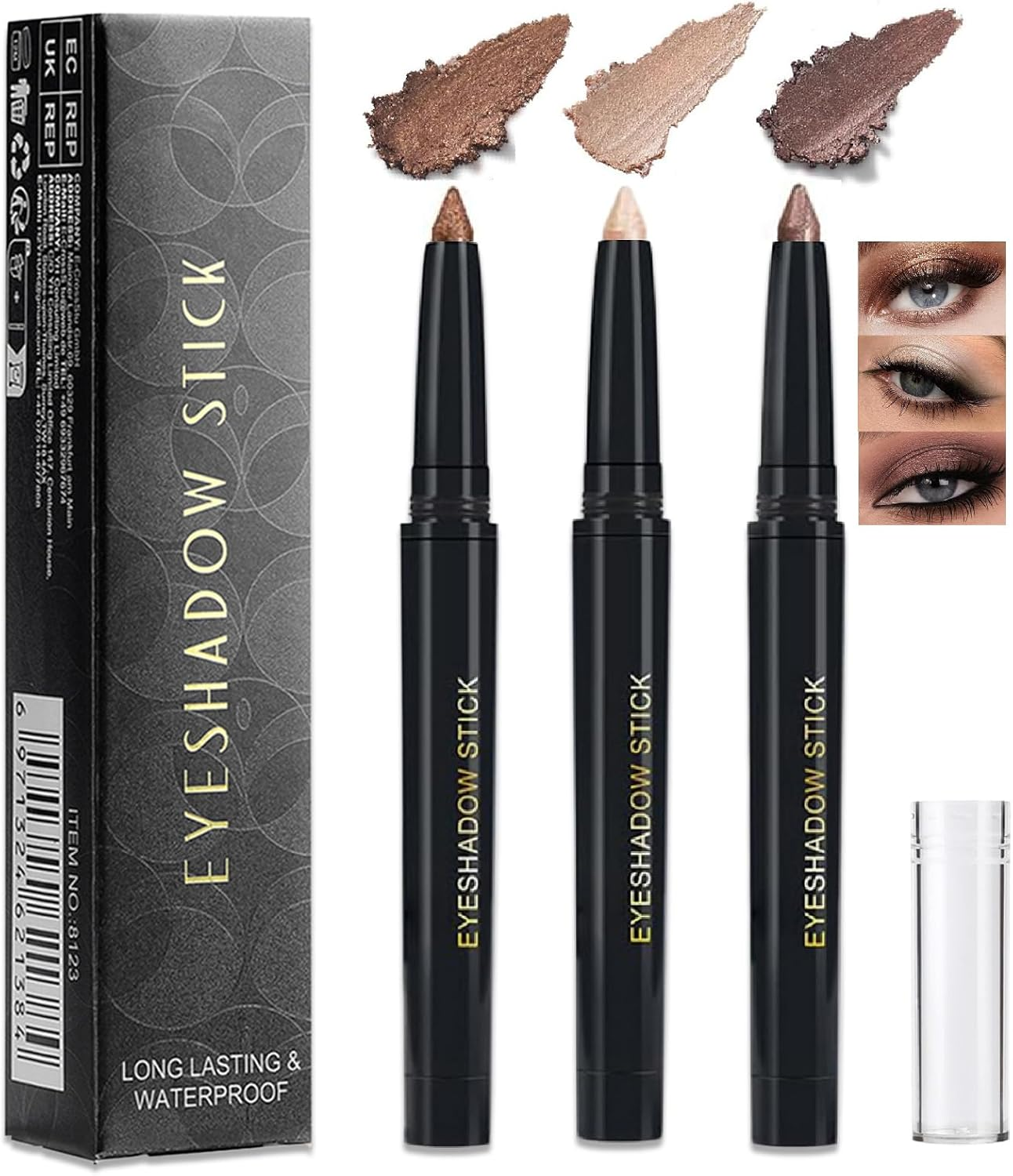 3 Pack Brown Eyeshadow Stick Set – Creamy, Waterproof & Smudge-Proof Eye Crayon