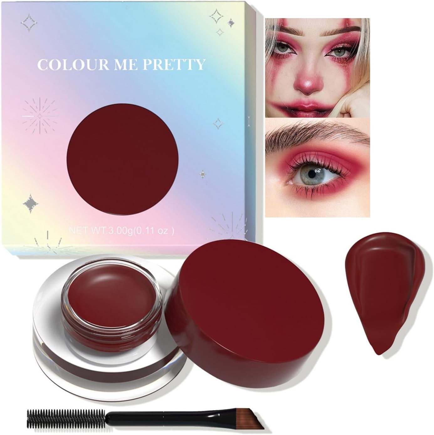 3-in-1 Deep Red Gel Eyeliner, Brow Pomade & Eyeshadow Cream – Smudge-Proof, M