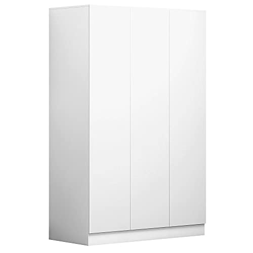 FWStyle Narvik Matt White 3 Door Wardrobe with Push to Open and Soft Close Hinges, Scandinavian No Handle Bedroom Storage Furniture with Hanging Rail and Shelving, W120 x H180 x D50cm
