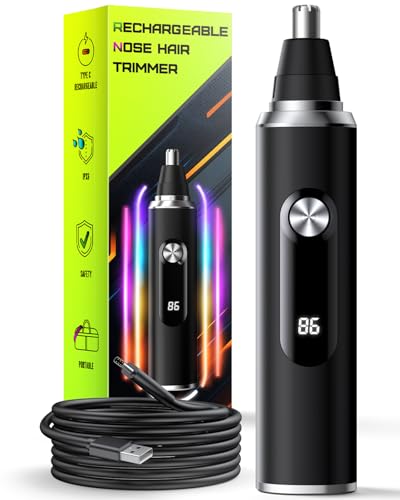 Rechargeable Nose Hair Trimmer for Men and Women, 2025 Professional Painless USB Nasal Trimmers, Ear and Eyebrow Facial Hair Removal with LED Display, IPX7 Waterproof, Dual Edge Blades, Easy Cleaning