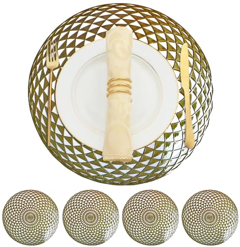 Vinyl Round Placemats Set of 4 - Non Slip Place Mats Ideal for Indoor and Outdoor Dining Table - Washable and Heat Resistant Table Mat for Kitchen Tables (Hunter Gold)