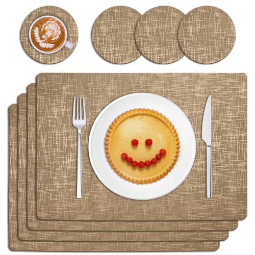 4 Pcs Heat-Resistant Placemats Durable Gold-Coffee Indoor/Outdoor PVC Place Mats