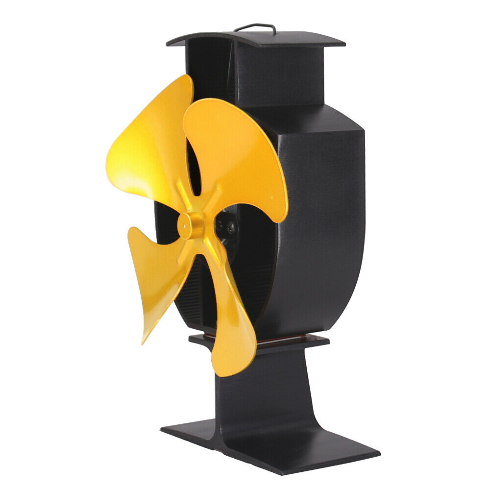 Gold 4 Blade Heat Powered Stove Fan Eco Friendly Wood Log Burning Fire Burner