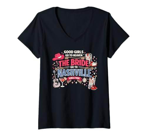 Women's Cowgirl Dress Woman Top The Bride Go to Nashville Girls Trip V-Neck T-Shirt