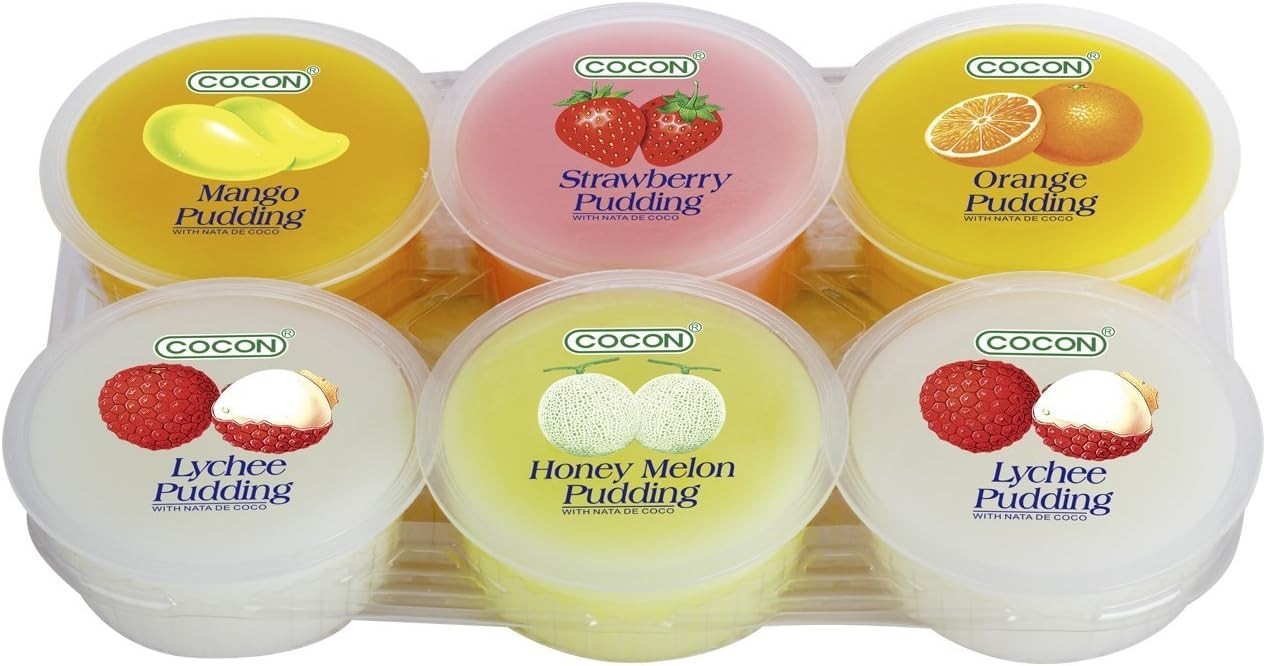 Cocon NATA de Coco Assorted Flavour Pudding 6-Pieces 480 g - Lot of 4 (Pack of 2)