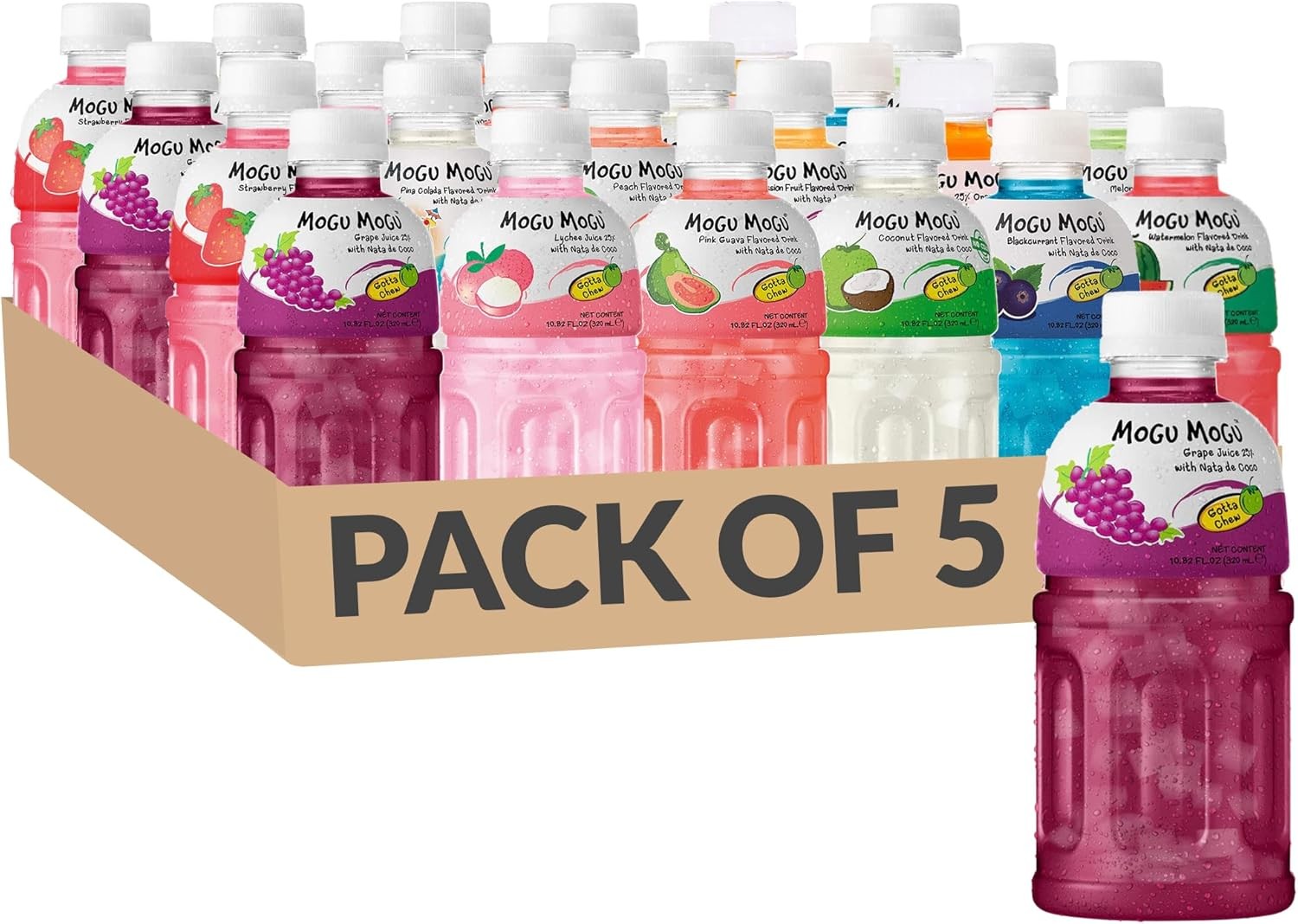 5 x 320ml Mogu Mogu Grape Flavoured Drink With Nata De Coco