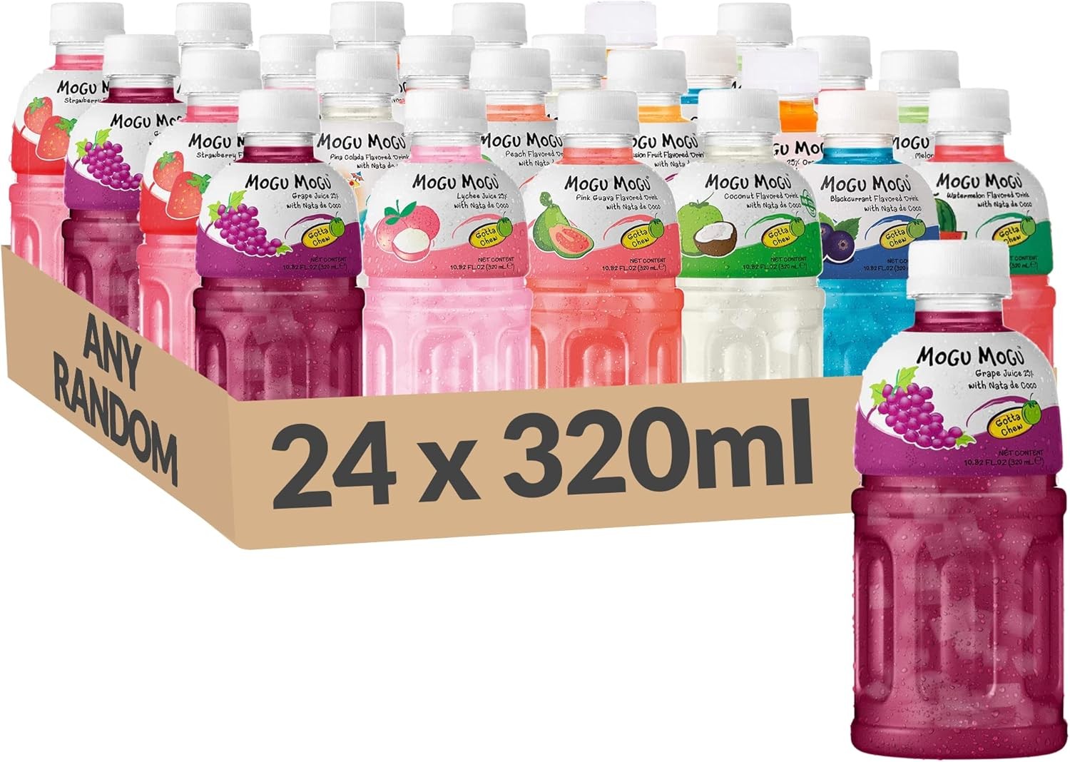 MOGU MOGU Real Fruit Juice with Nata De Coco 320ml 24-Pack Random Flavours Selec
