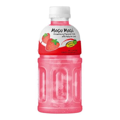 Mogu Mogu Nata De Coco Strawberry Flavored Drink | 320ml | Mogu Mogu Flavored Drinks | Nata De Coco | Jelly Texture | Refreshing Taste | Pack of 3 | Strawberry | Bottled Drink