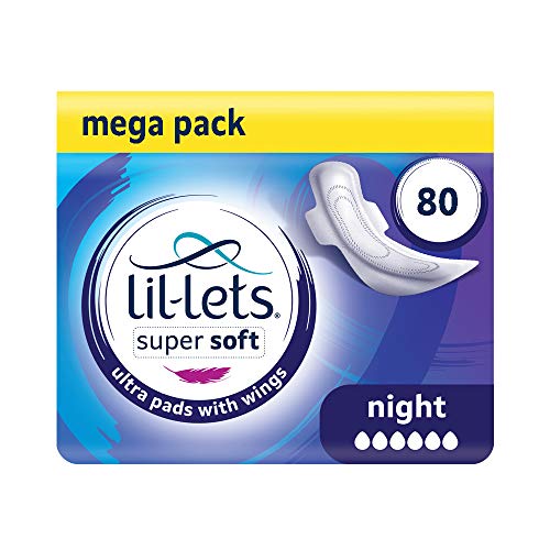 Lil-Lets Super Soft Ultra Thin Period Pads-80 Count, Night Absorbency, with Wings, (Packs of 8) 10 Pads-Bulk Pack, Very Heavy Flow for Nightime, Unscented, Extra Long Sanitary Towels
