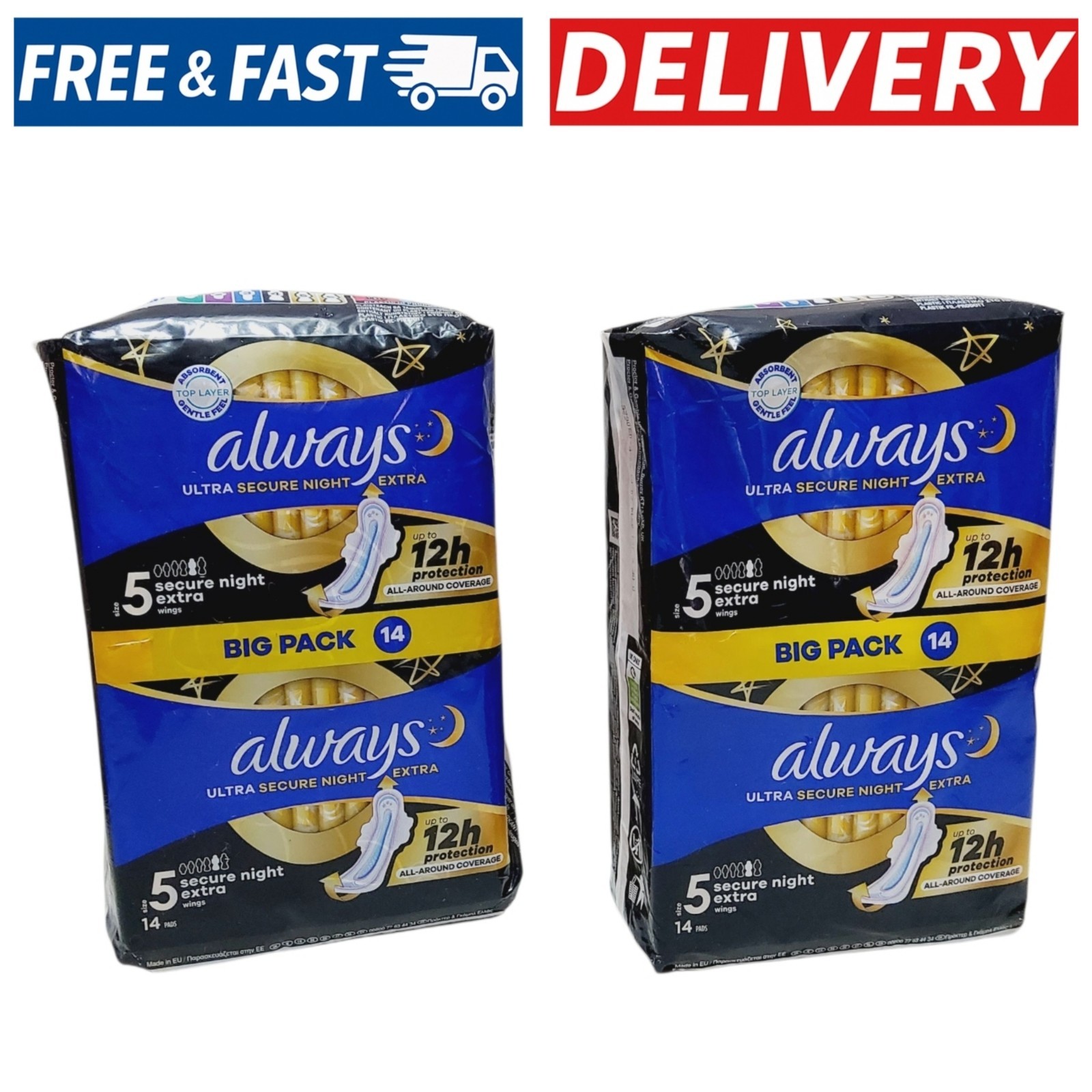 Always Ultra Sanitary Towels Secure Night Extra (Size 5) Wings x14 Pads x4 Bundle