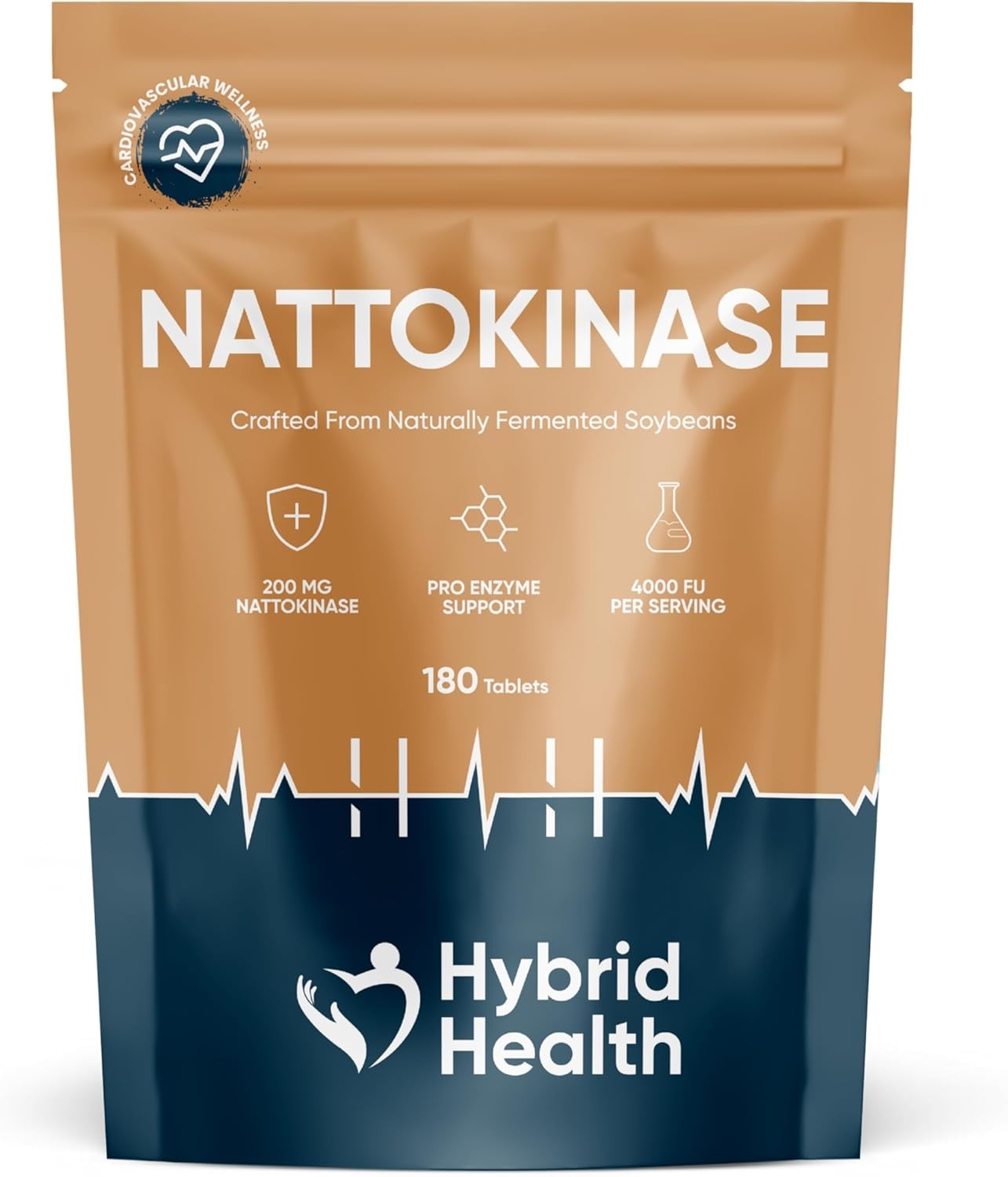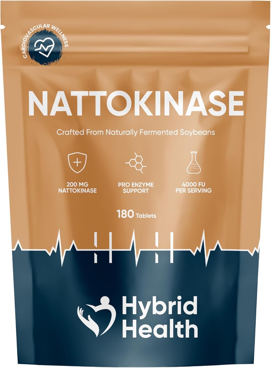 Hybrid Health Nattokinase 180 Tablets | 200MG 4000FU | Sourced from Naturally Fermented Soybeans | High Strength, Vegan, Non-GMO Formula for Cardiovascular Support