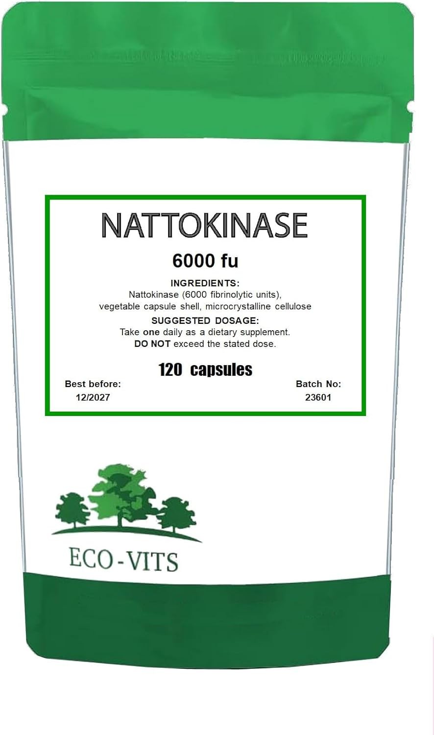 ECO-VITS NATTOKINASE (6000FU) 120 Capsules fibrinolytic (Anti-clotting) Capacit