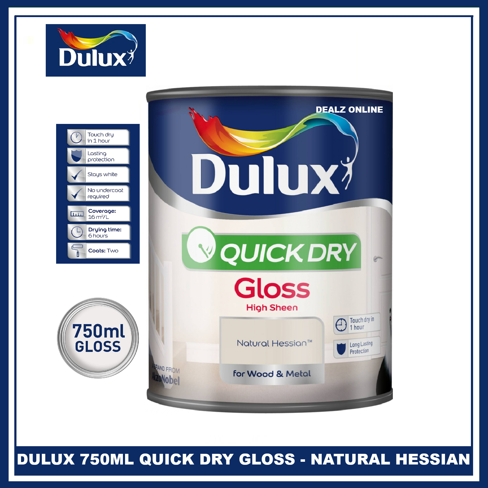 Dulux Quick Dry Gloss Paint For Wood And Metal - Natural Hessian 750Ml