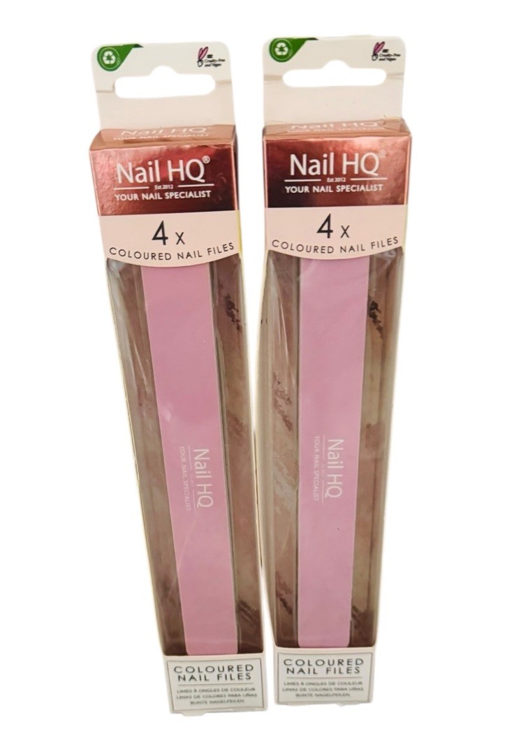 2x Nail HQ Coloured Nail Files for Natural & Artificial Nails Pack of 4
