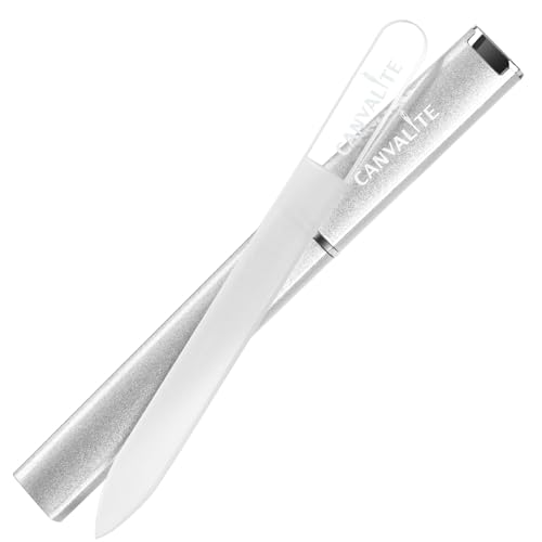 Canvalite Glass Nail Files for Natural Nails, Long Lasting Etch Glass Nail File with Hardcase Stocking Fillers Gifts for Women - Silver