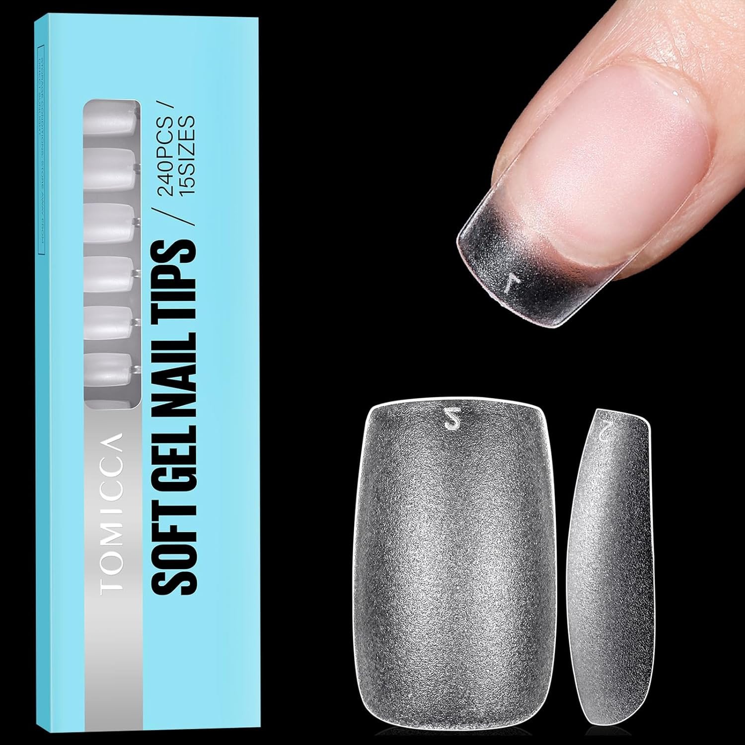 TOMICCA Short Square Nail Tips, Clear Nail Tips Natural False Nails Square Frenc