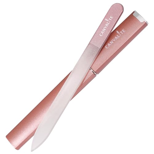 Canvalite Glass Nail Files for Natural Nails, Long Lasting Etch Glass Nail File with Hardcase Stocking Fillers Gifts for Women - Rose Gold